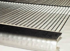 Piano wire screen with straight wires molded into metal or plastic movable sliding profiles is used for separating wet, sticky and other materials.